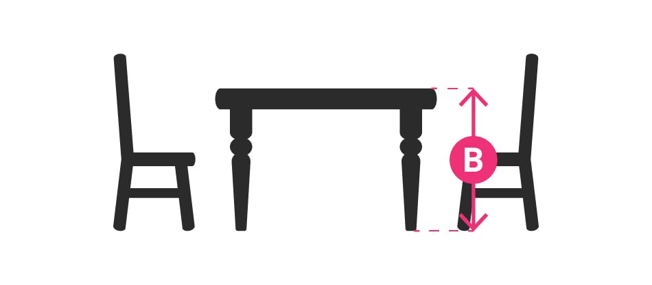 Dining: Width (A) should fit within the intended room and height (B) should not exceed your doorway clearance.